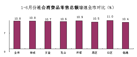 上半年,全区实现社会消费品零售总额57.17亿元,增长11.0%。